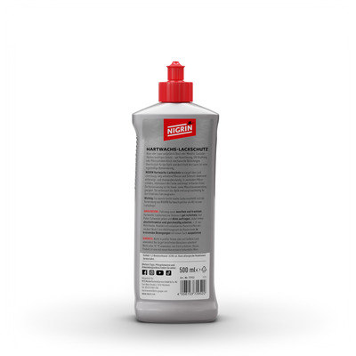 Der NIGRIN Hartwachs-Lackschutz schützt Fahrzeuglacke langanhaltend vor Umwelteinflüssen wie UV-Strahlung, Regen, Schmutz und Streusalz. Die hochwertige Hartwachs-Formel bildet eine widerstandsfähige Schutzschicht, die Wasser und Schmutz abperlen lässt und gleichzeitig den Lack in neuem Glanz erscheinen lässt.