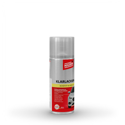 Das NIGRIN Klarlack-Spray ist ein farbloser Schutzlack zur zuverlässigen Versiegelung von Farblackierungen. Es eignet sich ideal zur Konservierung ganzer Lackflächen sowie für partielle Lackreparaturen und Ausbesserungsarbeiten. Die hochwertige Formulierung haftet hervorragend auf durchgetrockneten Acryl-, Nitro- und Einbrennlackierungen.