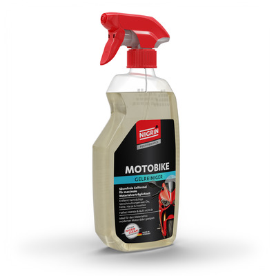 Der NIGRIN Moto-Bike Gel-Reiniger wurde speziell für den komplexen Material-Mix moderner Motorräder entwickelt. Seine kraftvolle, säurefreie Gelformel haftet optimal an senkrechten Flächen und wirkt selbsttätig gegen hartnäckige Verschmutzungen wie Öl, Fett, Harz, Staub oder Insektenreste – ohne dabei abzulaufen.