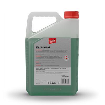 Das NIGRIN Scheibenklar Konzentrat mit Apfelduft sorgt für klare, streifenfreie Sicht und verstärkt aktiv die Wirkung der Scheibenwaschanlage. Es entfernt zuverlässig Insektenreste sowie Öl- und Fettrückstände von der Windschutzscheibe und verbessert so Ihre Fahrsicherheit bei allen Wetterverhältnissen – besonders bei Regen, Dunkelheit und Gegenlicht.